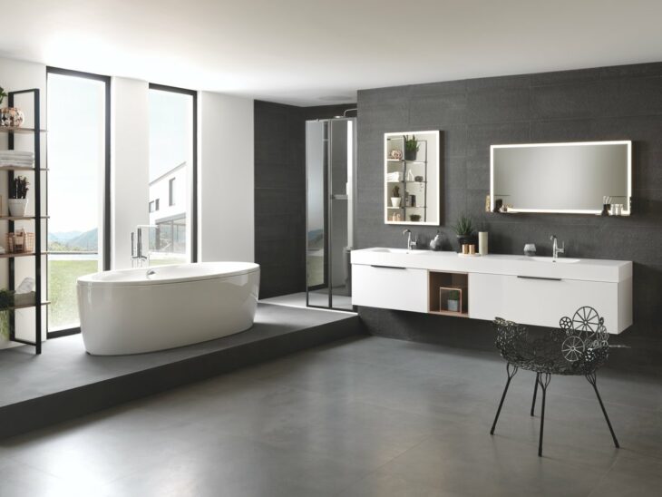Pour une décoration inédite, il est possible de jouer sur l’aspect des murs et des séparations. En ce qui concerne les murs, vous avez le choix entre une simple peinture ou un carrelage mural. En termes de couleur de salle de bain, tout dépend de l’effet recherché. Les couleurs vives offrent du caractère à l’ensemble de la pièce. Si vous voulez un résultat apaisant et « cosy », les teintes froides sont à privilégier, mais faites contraster avec une belle lumière de salle de bain.