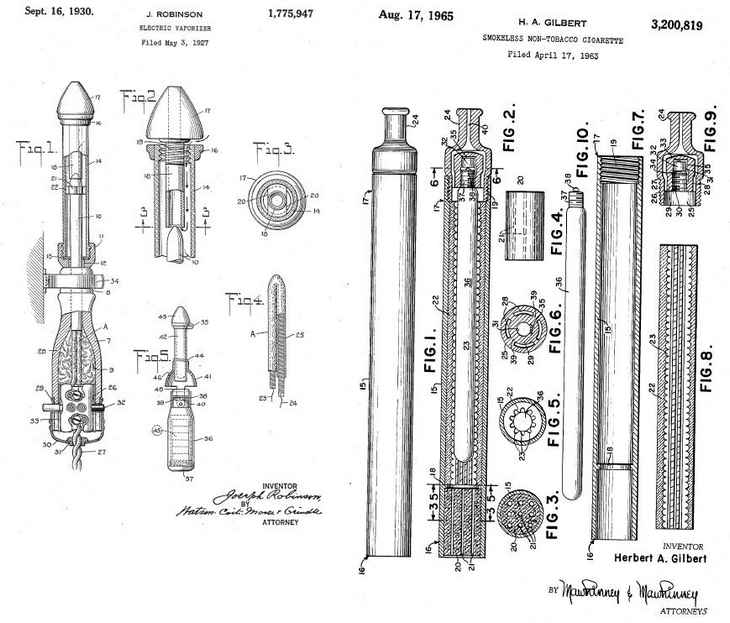 Vous pensez que votre cigarette électronique découle d’une invention toute neuve ? Détrompez-vous ! Le premier brevet déposé remonte à l’année 1927 : à l’époque, Joseph Robinson imagine un « dispositif de vaporisation » permettant d’inhaler plusieurs composants médicinaux différents.